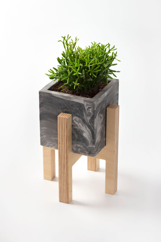 Ahşap Ayaklı Siyah Beton Saksı