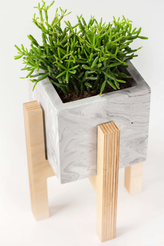 Ahşap Ayaklı Beyaz Beton Saksı