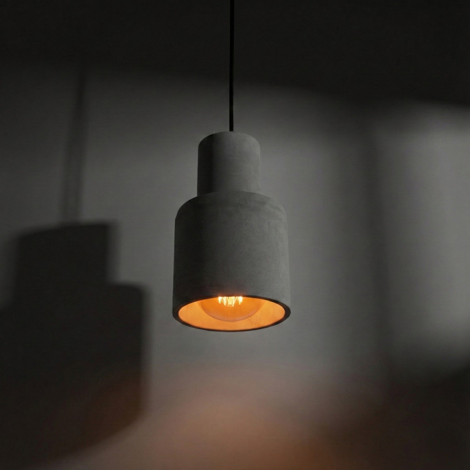 Katmanlı Gri Silindir Beton Tavan Aydınlatması